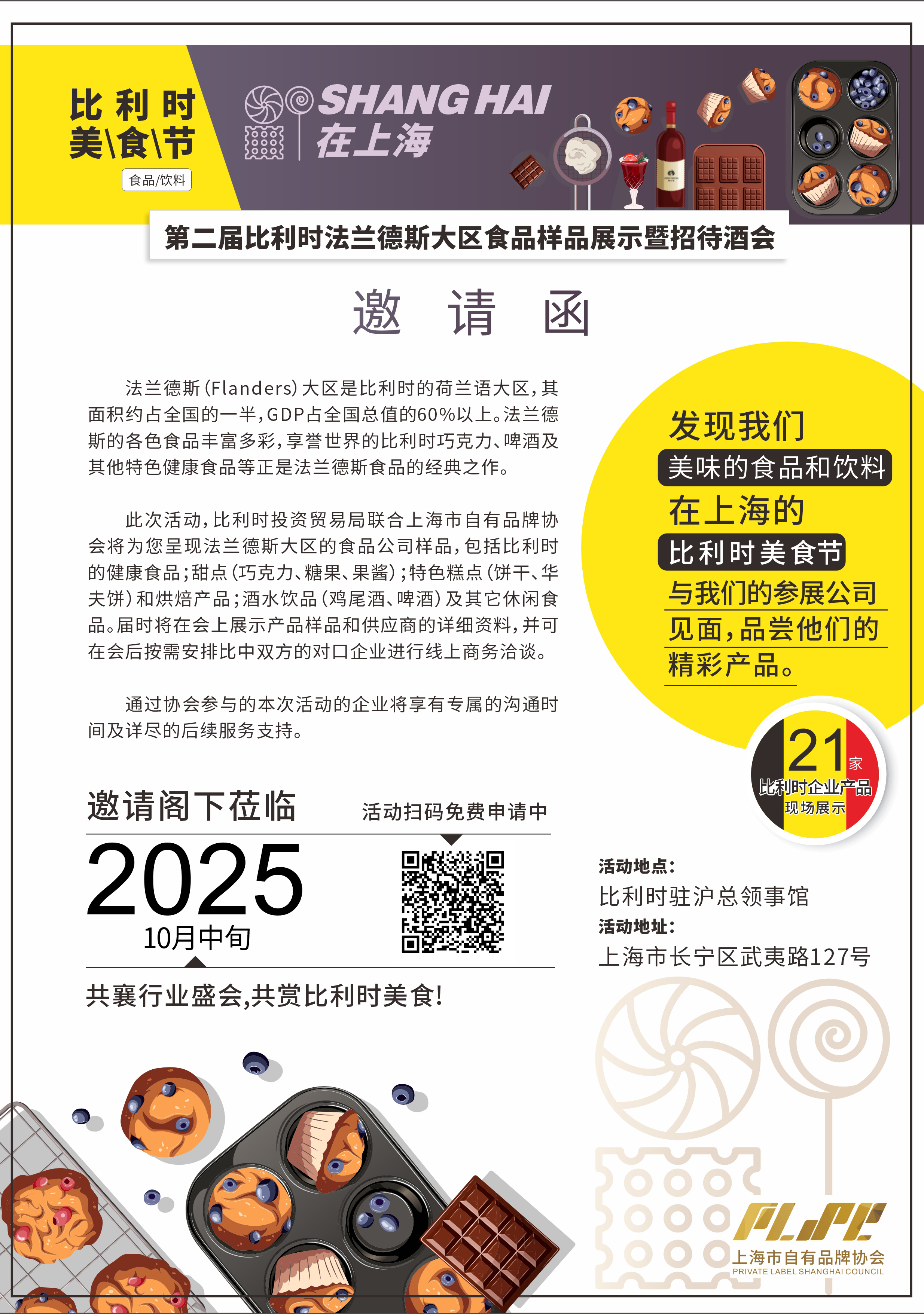 10 月 16日,上海市自有品牌协会与比利时驻沪总领事馆(长宁区武夷路 127 号)将举办第二届·法兰德斯大区食品展!